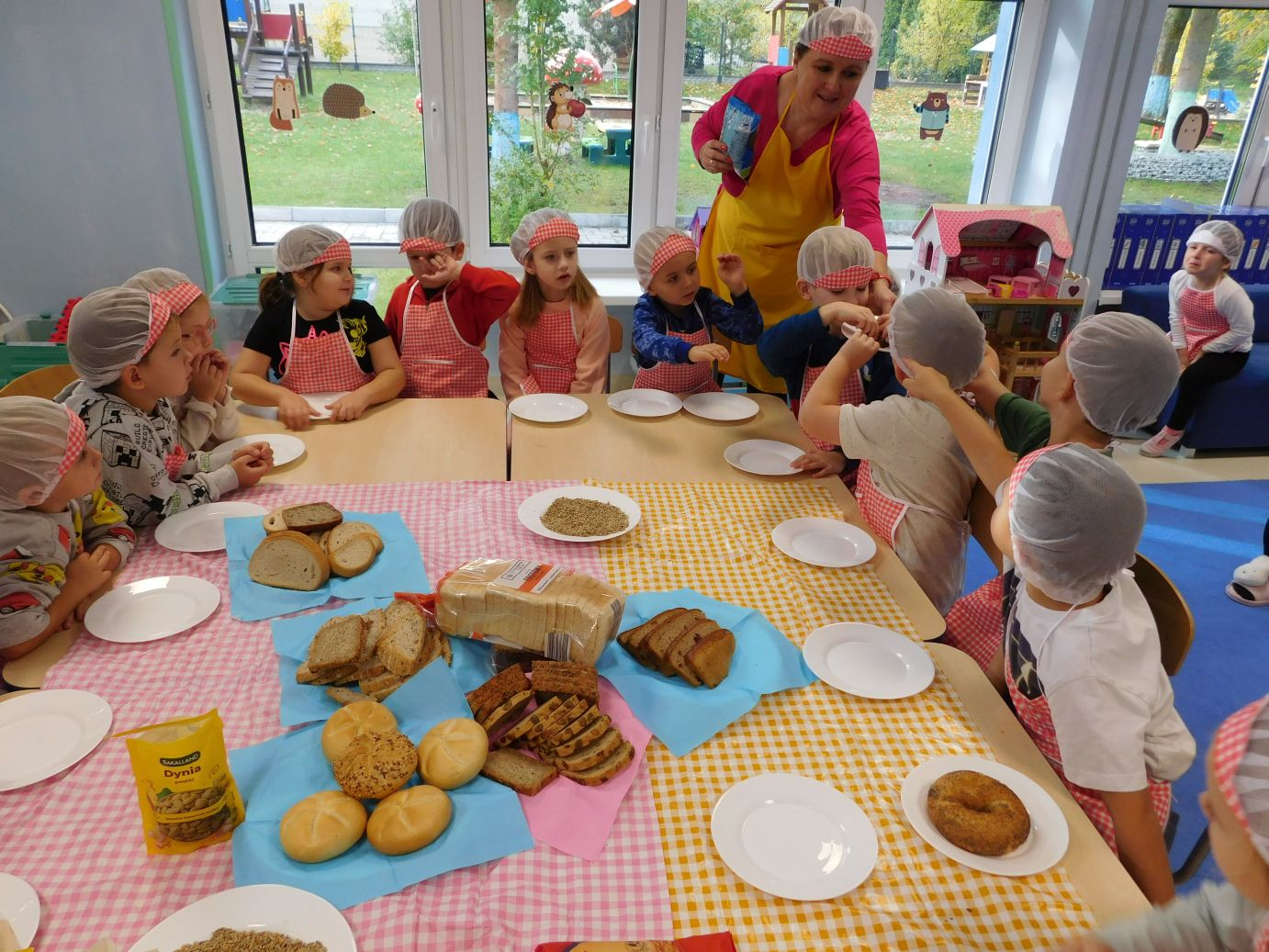 Najwięcej radości sprawiło pieczenie własnego chleba z nasionami. Chlebek smakował wyśmienicie, a dzieci były dumne ze swojego wypieku. To był przepyszny i pachnący dzień pełen zabawy i nowych odkryć!