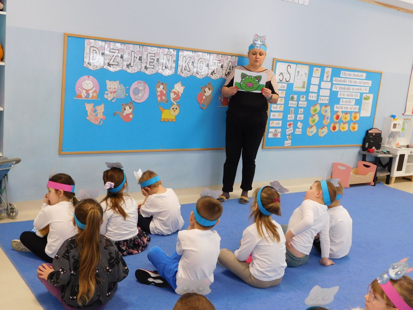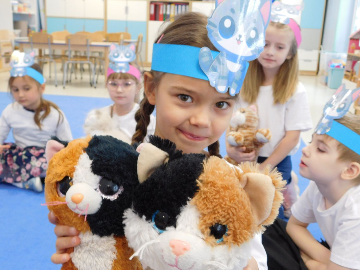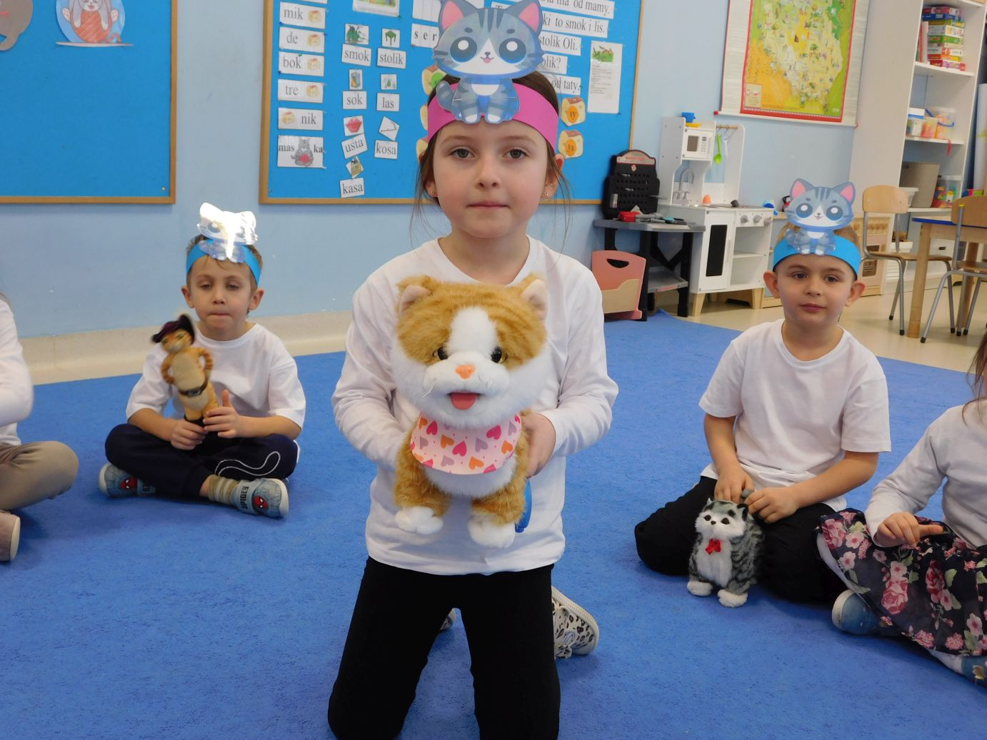 Dużą atrakcją była wizyta Pani Ewy z kotką Arią. Dzieci mogły zobaczyć zwierzątko z bliska, pogłaskać je i dowiedzieć się, jak zachowuje się domowy pupil.