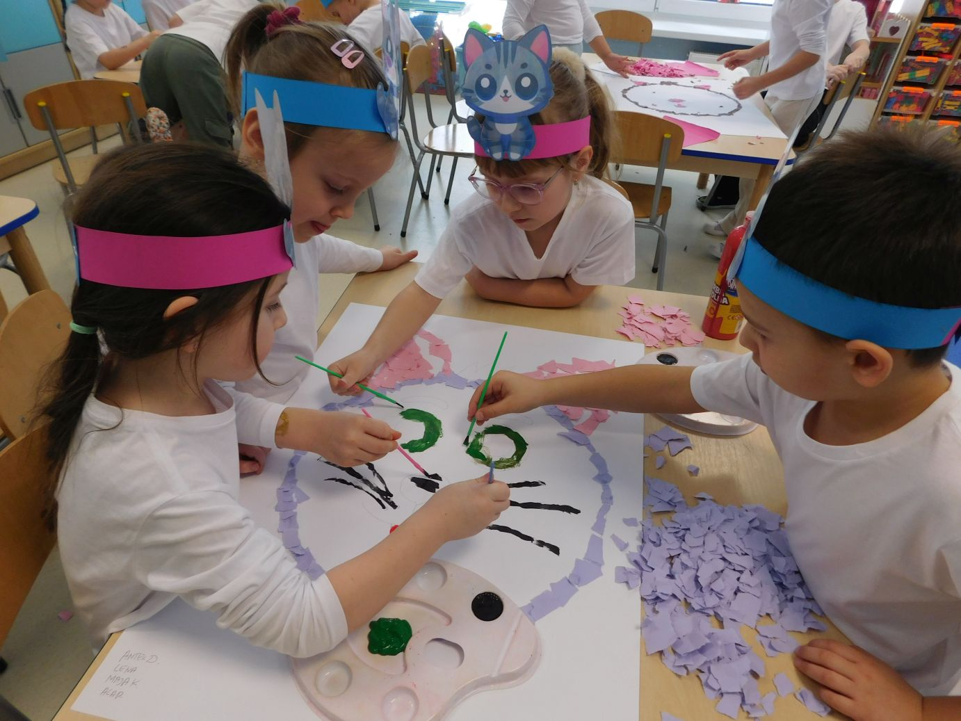 Na zakończenie wykonaliśmy wspólną pracę plastyczną – wesołe kotki. 🐱