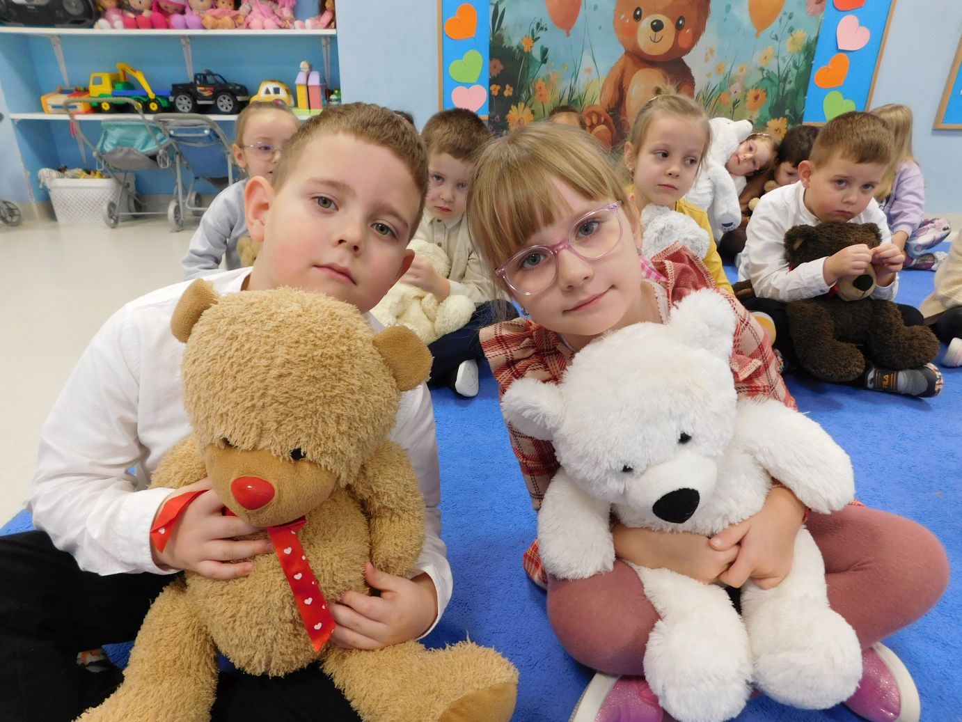 25 listopada obchodziliśmy Dzień Pluszowego Misia. Dzieci z radością przyniosły swoje ulubione pluszaki, które towarzyszyły im przez cały dzień w przedszkolu podczas wspólnych zabaw, tańców i konkursów. Przedszkolaki wykonały także kolorowe portrety misiów oraz wysłuchały opowieści o przygodach misiowych bohaterów. To był pełen uśmiechu, ciepła i przytulnych wrażeń dzień.