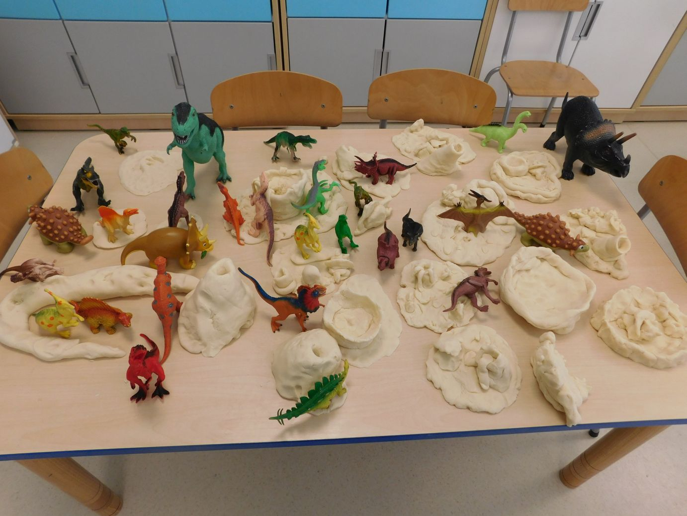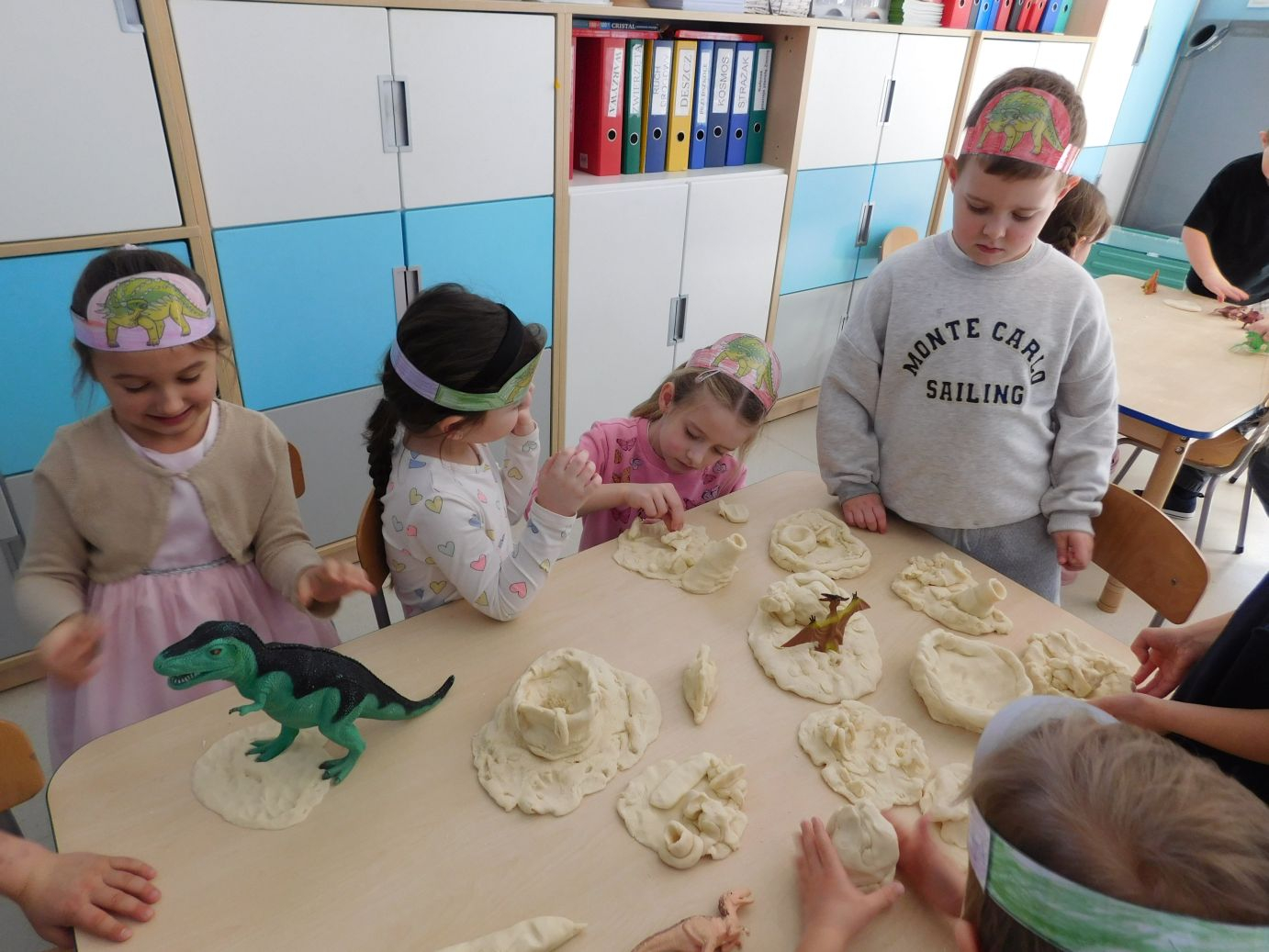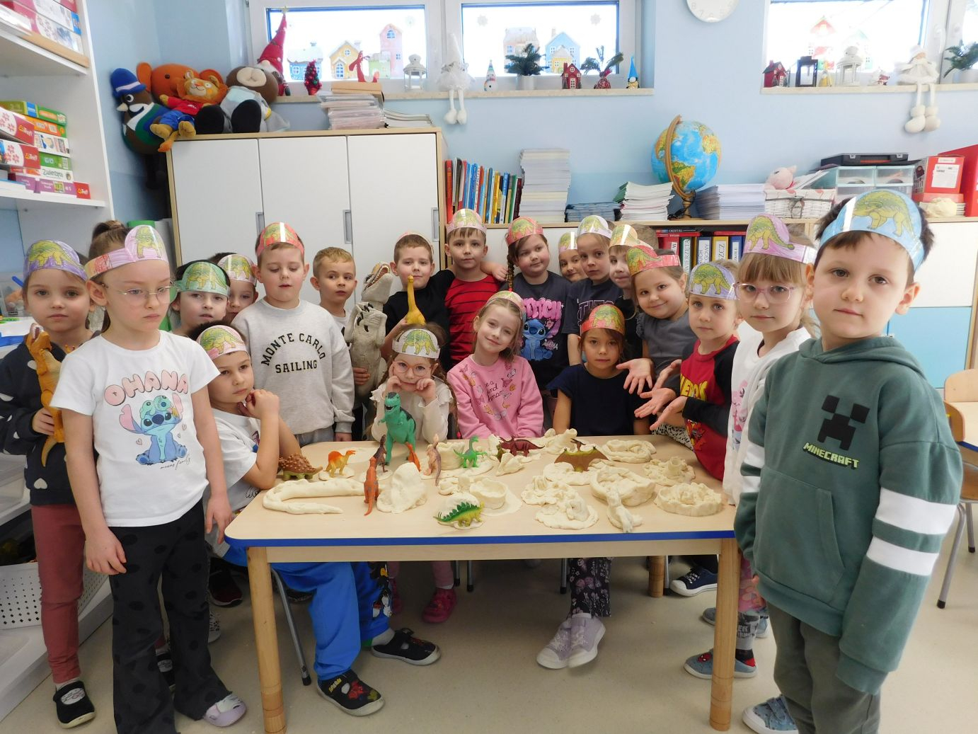 W grupie Jagódek świętowaliśmy Dzień Dinozaura. Dzieci z wielkim zaangażowaniem stworzyły z masy solnej dinozaurowe miasto – pojawiły się wulkany, rośliny z dawnych czasów oraz różne dinozaury. Wspólna praca sprawiła wszystkim dużo radości.