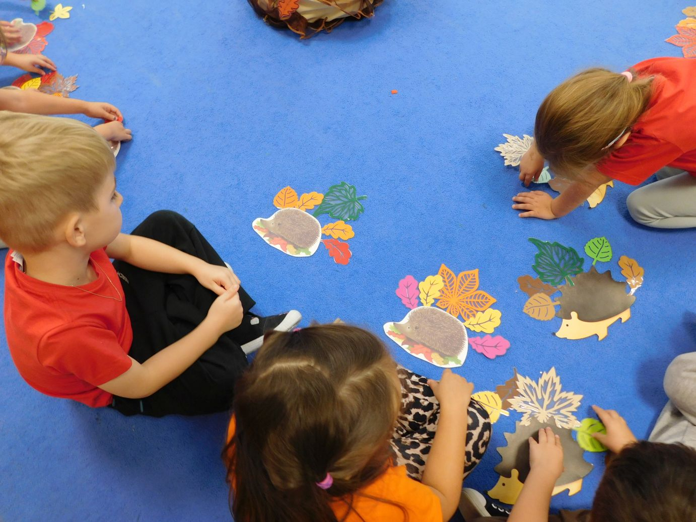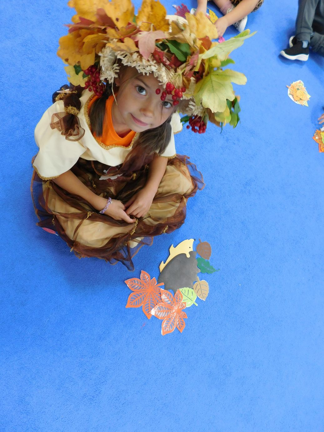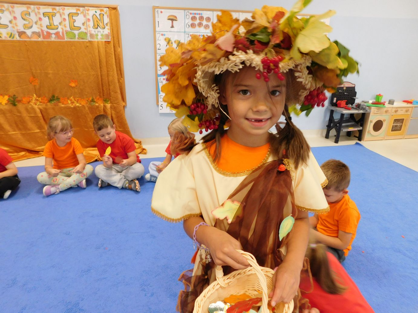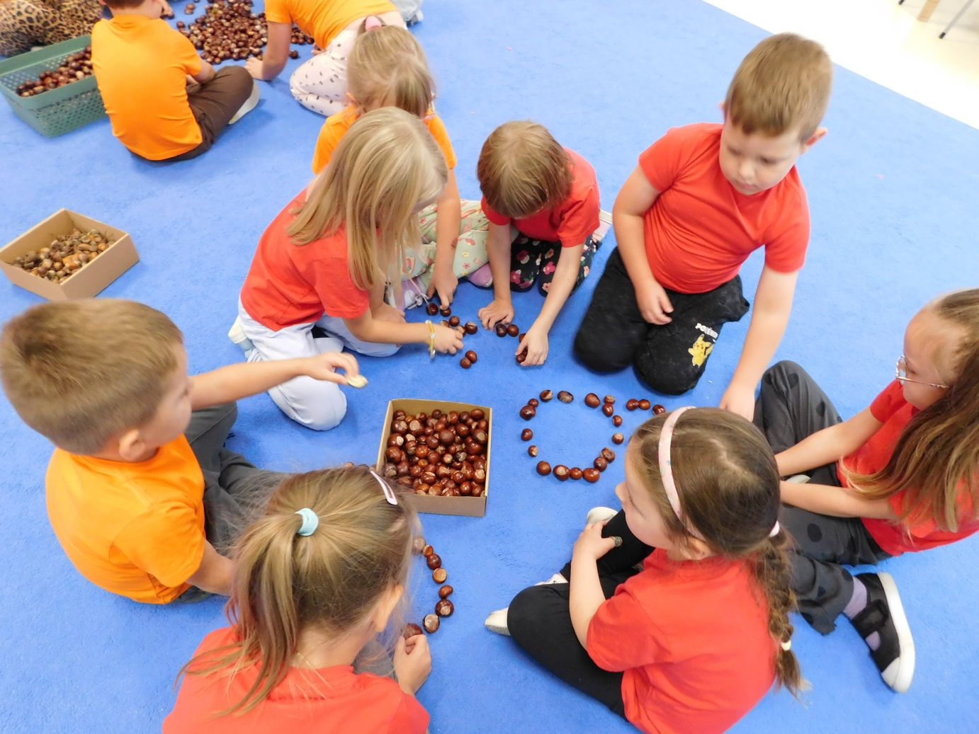 W środę 24 września w grupie Jagódek odbyły się zajęcia tematyczne pt. „Dary jesieni z Panią Jesienią”. Dzieci spotkały się z Panią Jesienią, która przyniosła kosz pełen jesiennych skarbów: kolorowe liście, kasztany, żołędzie, szyszki i orzechy. Przedszkolaki rozpoznawały i nazywały dary jesieni, a także tworzyły jesienne kompozycje z zebranych materiałów. Zajęcia dostarczyły dzieciom wiele radości, rozwijały ich spostrzegawczość, wiedzę o porach roku oraz integrowały grupę poprzez wspólną zabawę.
