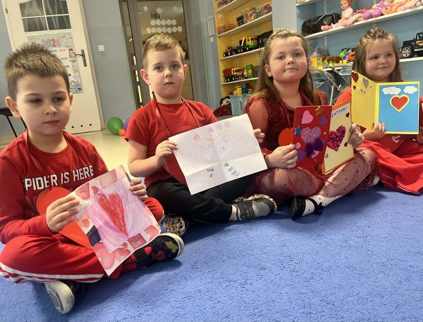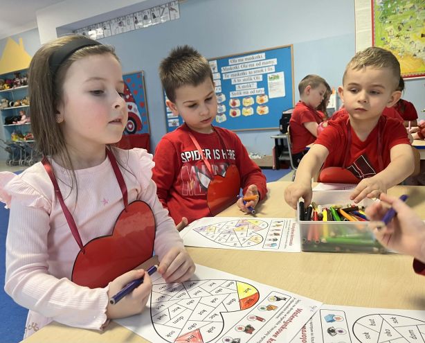 W Jagódkach odbyły się zajęcia walentynkowe, podczas których dzieci rozmawiały o przyjaźni, życzliwości i okazywaniu sympatii innym. Przedszkolaki brały udział w różnych zabawach i aktywnościach – układały wyrazy z sylab, przenosiły papierowe serca za pomocą słomki, wykonywały tematyczne karty pracy, a na zakończenie wręczały sobie przygotowane wcześniej walentynki.