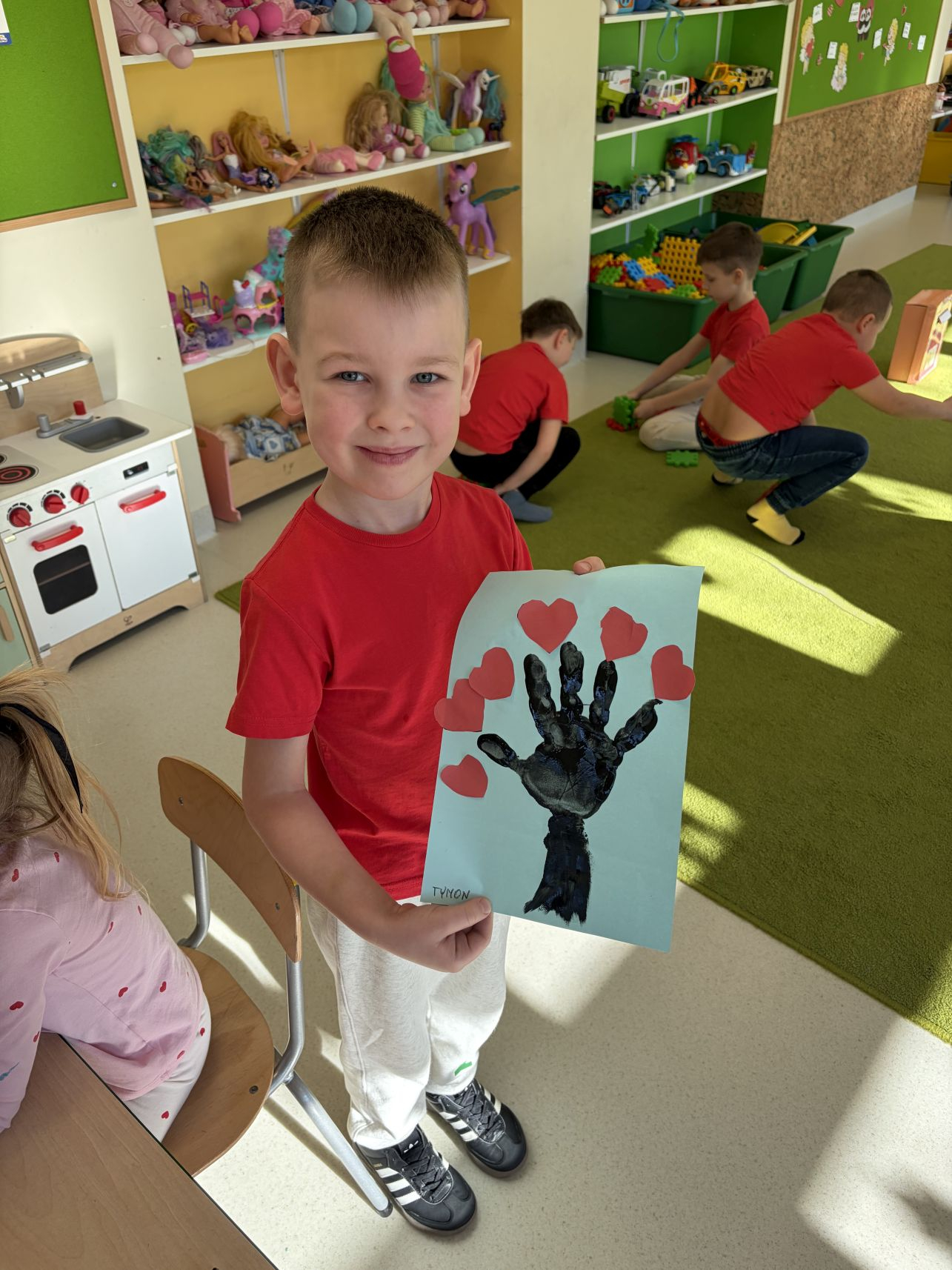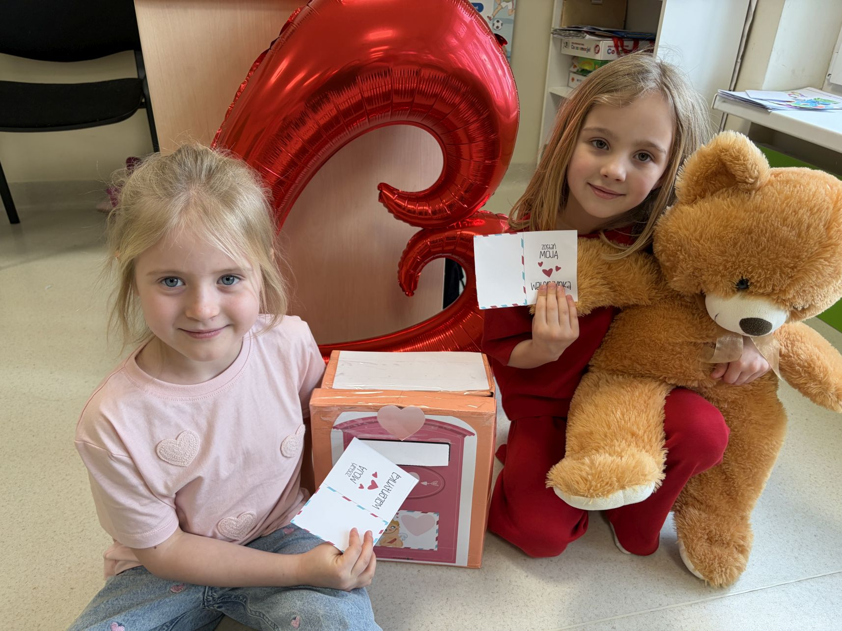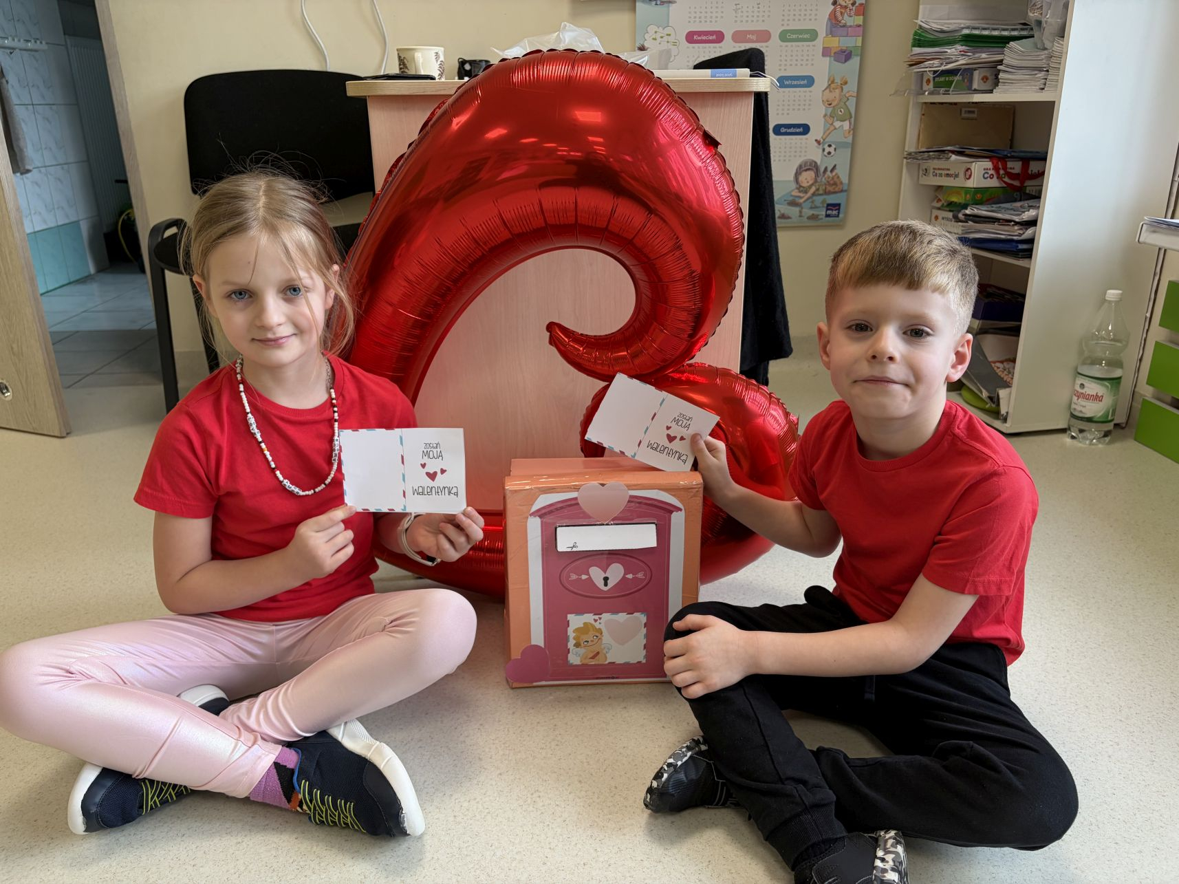 WALENTYNKI-W-GRUPIE-JABLUSZEK-213 lutego w przedszkolu obchodziliśmy Walentynki. Tego dnia dzieci przygotowały własnoręczne walentynki, które następnie wrzuciły do specjalnej skrzynki walentynkowej. Podczas zajęć rozmawialiśmy o tym, czym są Walentynki oraz jakie uczucia są związane z tym świętem, zwracając uwagę na życzliwość, przyjaźń i okazywanie sympatii innym. Wspólnie wykonaliśmy także drzewko walentynkowe, które stało się piękną dekoracją korytarza. Na zakończenie zrobiliśmy pamiątkowe zdjęcia, aby uwiecznić ten radosny i pełen serdeczności dzień.❤️🥰