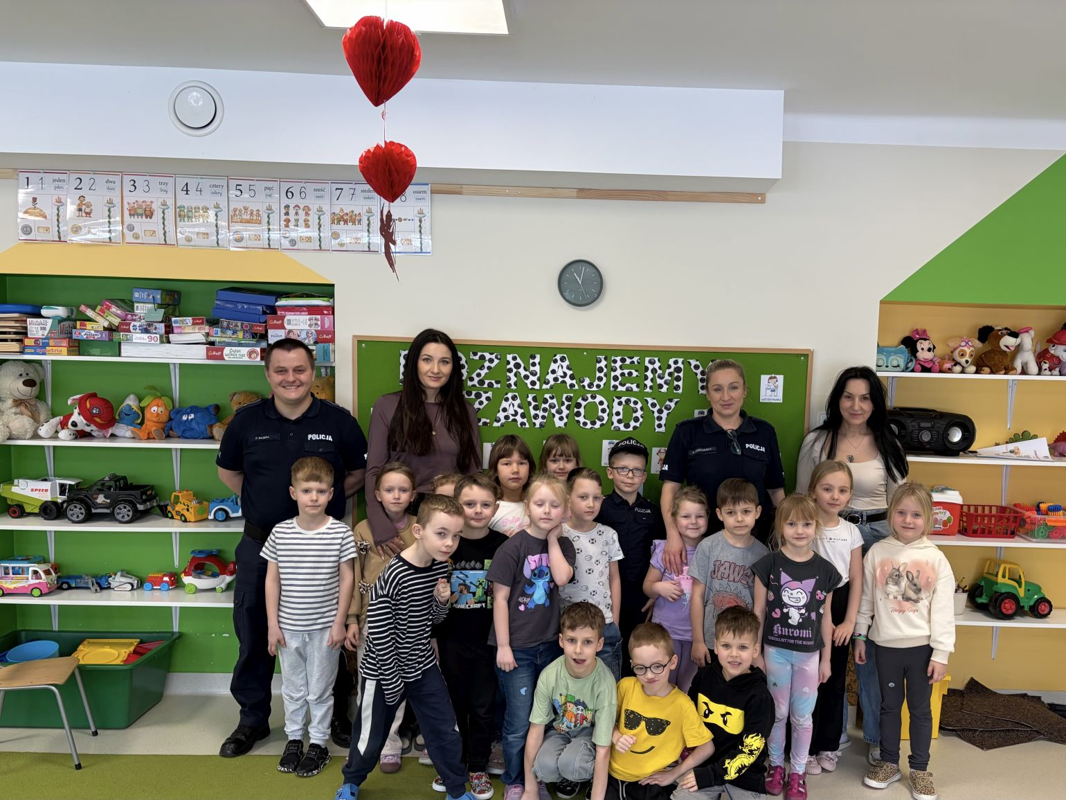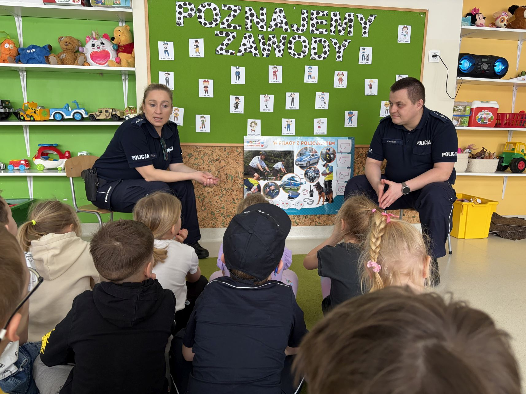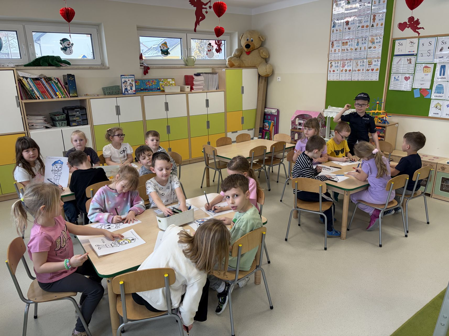19 lutego grupę Jabłuszek odwiedzili funkcjonariusze PolicjI w ramach realizowanego tematu tygodnia „Poznajemy zawody naszych rodziców”. Goście opowiedzieli dzieciom o swojej odpowiedzialnej i niezwykle ważnej pracy. Przedszkolaki dowiedziały się, jakich pojazdów policjanci używają na co dzień, jak wygląda szkolenie psów policyjnych oraz do jakich zadań są one przygotowywane. Funkcjonariusze podkreślili również, jak istotne jest dbanie o bezpieczeństwo każdego dnia. 🚔🚓