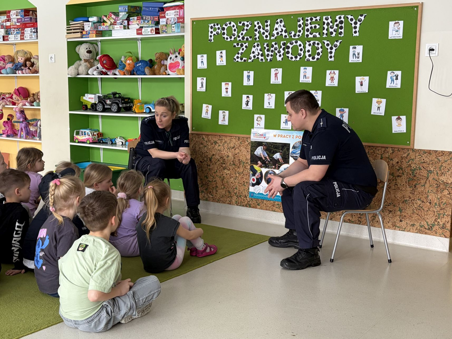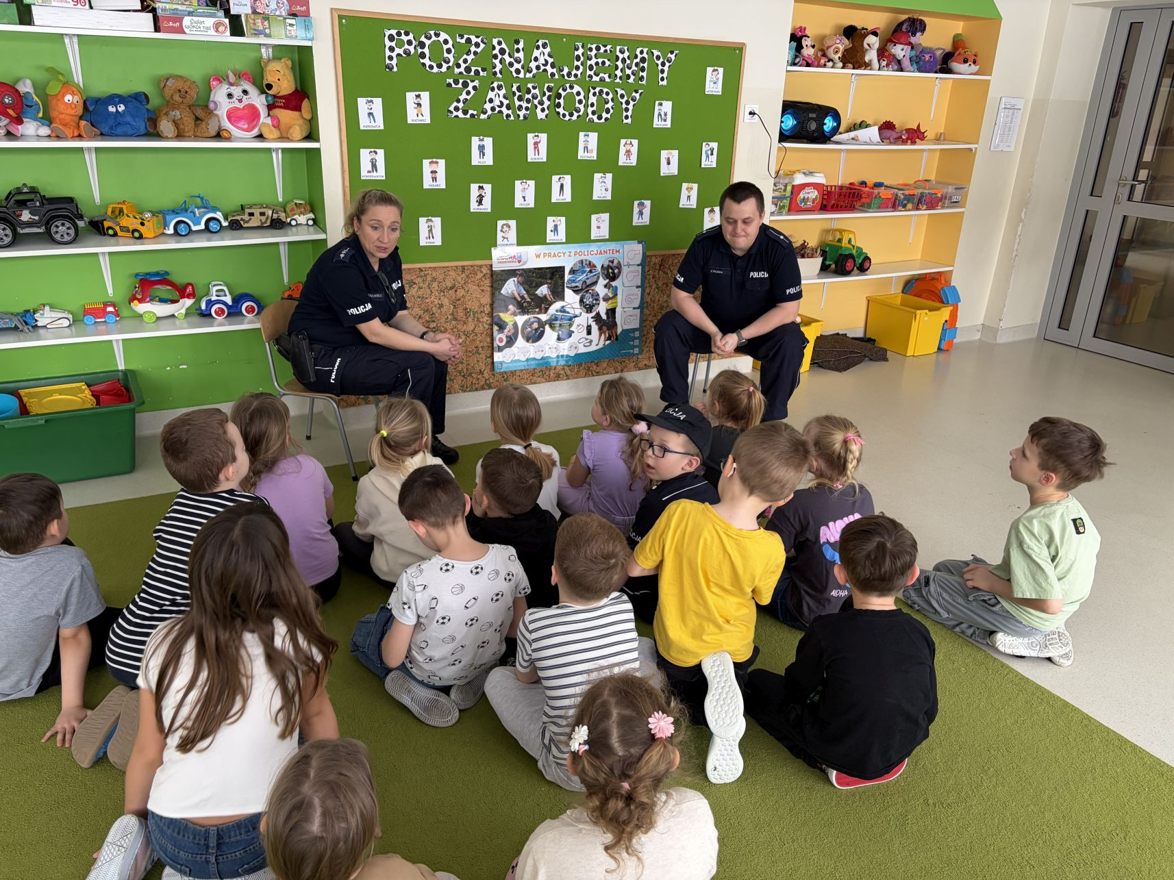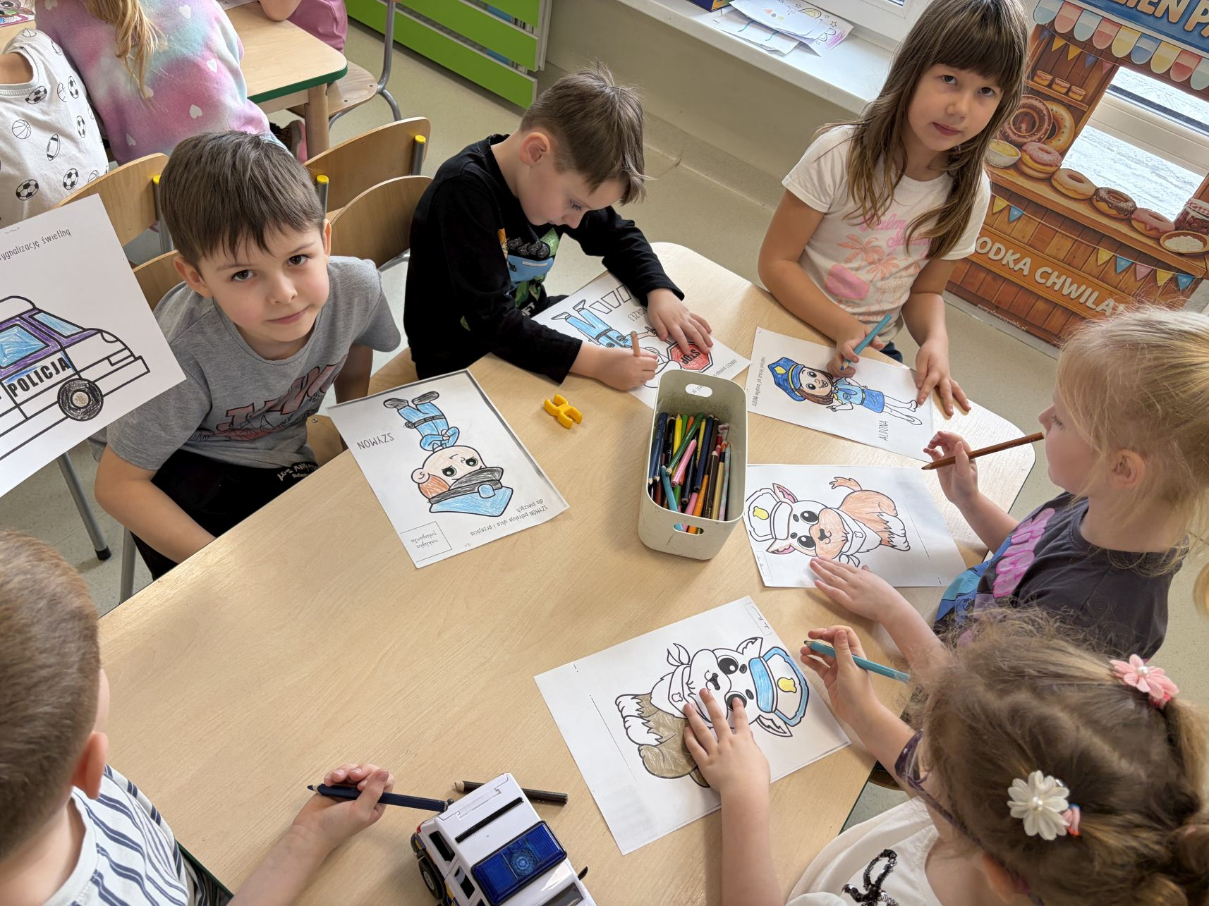 19 lutego grupę Jabłuszek odwiedzili funkcjonariusze PolicjI w ramach realizowanego tematu tygodnia „Poznajemy zawody naszych rodziców”. Goście opowiedzieli dzieciom o swojej odpowiedzialnej i niezwykle ważnej pracy. Przedszkolaki dowiedziały się, jakich pojazdów policjanci używają na co dzień, jak wygląda szkolenie psów policyjnych oraz do jakich zadań są one przygotowywane. Funkcjonariusze podkreślili również, jak istotne jest dbanie o bezpieczeństwo każdego dnia. 🚔🚓