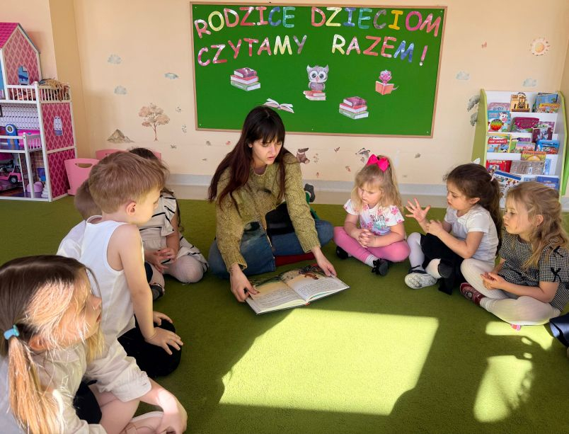 Dzieci z wielkim zainteresowaniem słuchały czytanych historii, przenosząc się do świata wyobraźni. Takie spotkania to wspaniała okazja do integracji, rozbudzania pasji do literatury oraz nauki wartości moralnych.