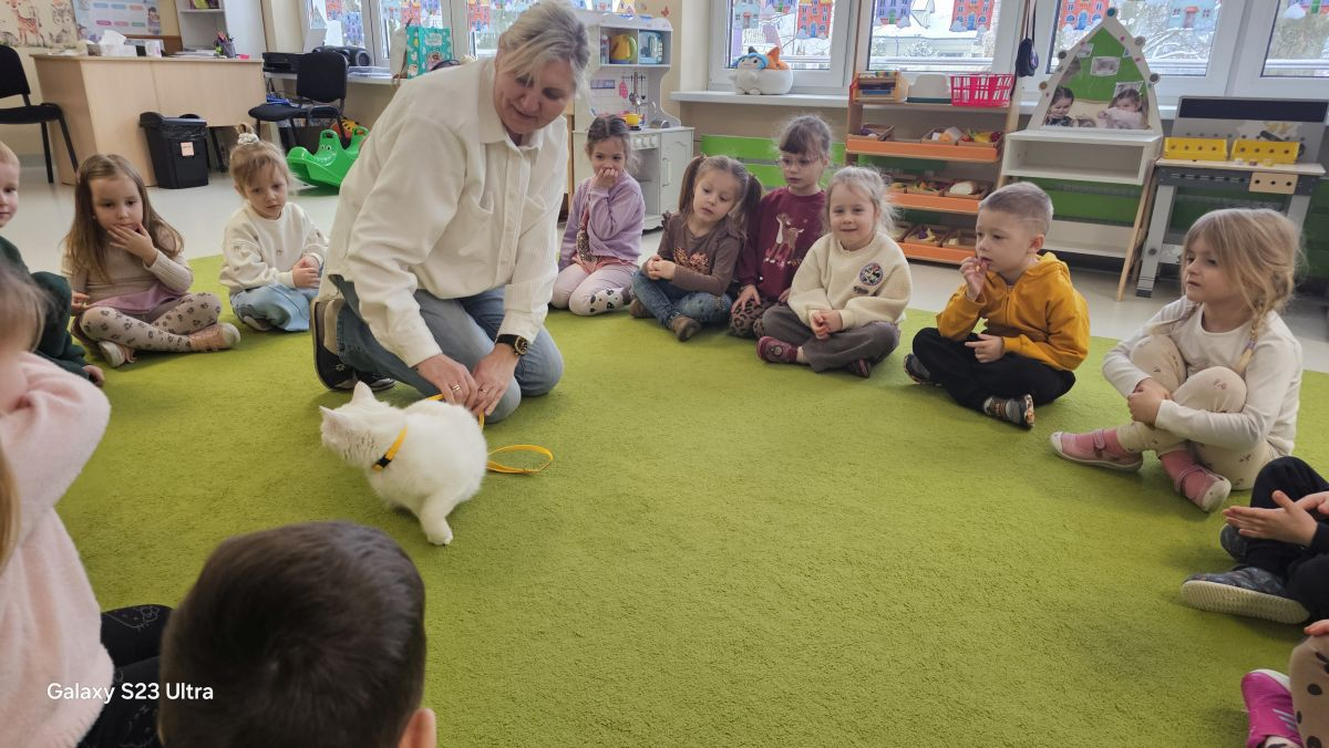 Przedszkolaki z zaangażowaniem kolorowały koty. Dzieci poznały również wiele ciekawostek o kotach oraz dowiedziały się, jakie są ich różne rodzaje. Dużą frajdę sprawiło także zwijanie wełny, które ćwiczyło ich sprawność i cierpliwość.