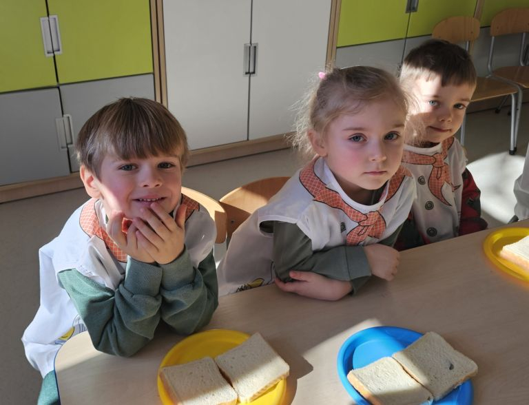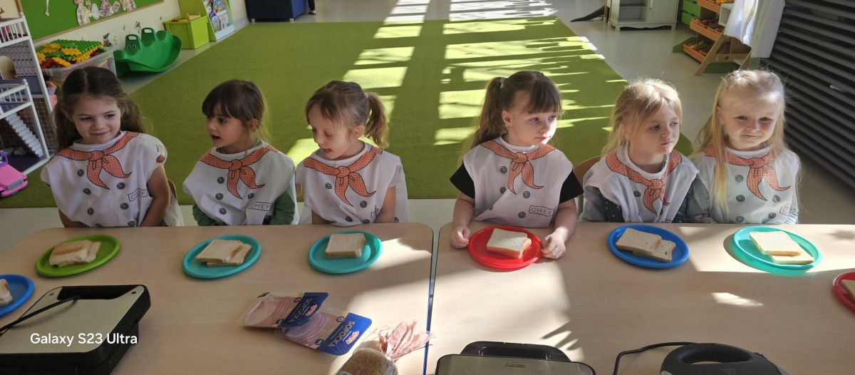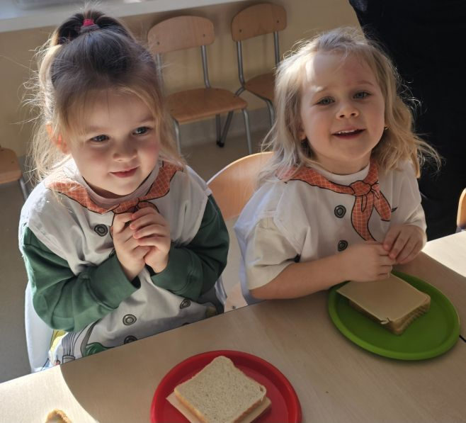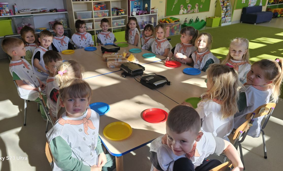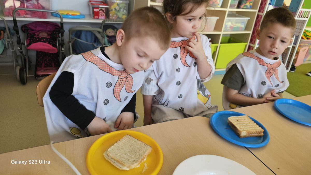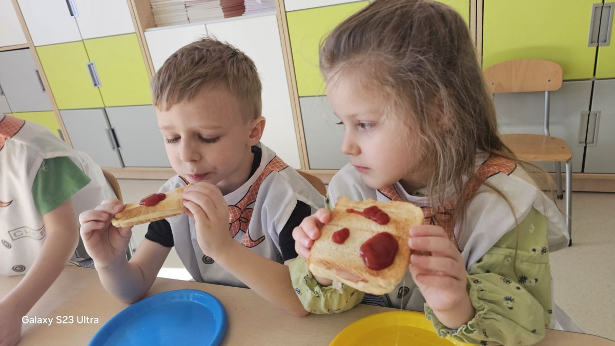 Było to nie tylko smaczne, ale również bardzo wartościowe doświadczenie, które rozwijało samodzielność, kreatywność oraz umiejętność współpracy. Na koniec wszyscy ze smakiem zjedli przygotowane przez siebie tosty.