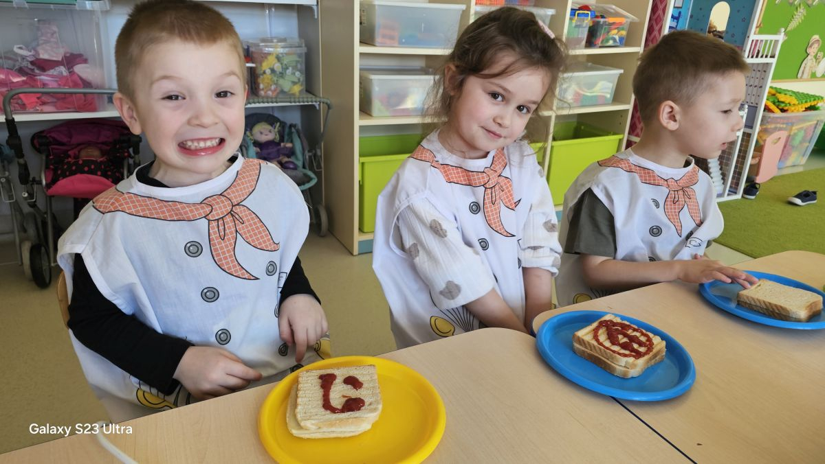 W grupie „Cytrynki” obchodziliśmy Dzień Tosta. Dzieci miały okazję samodzielnie przygotować swoje tosty. Z wielkim zaangażowaniem wybierały dodatki i komponowały własne przekąski. Wszystkim towarzyszyło dużo radości, uśmiechu i dumy z wykonanej pracy.