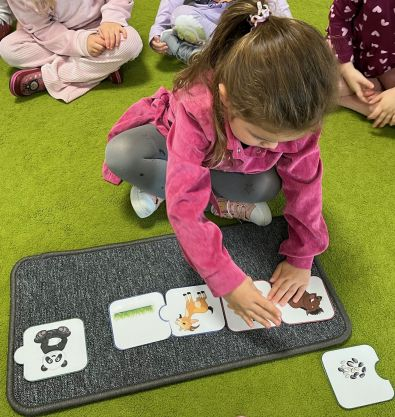 Dzieci podczas zajęć miały okazję segregować zwierzęta na dzikie i domowe, rozpoznawały ich tropy i dowiedziały się, gdzie mieszkają oraz co lubią jeść niektóre zwierzęta. To były ciekawe zajęcia o naturze i potrzebach zwierząt.