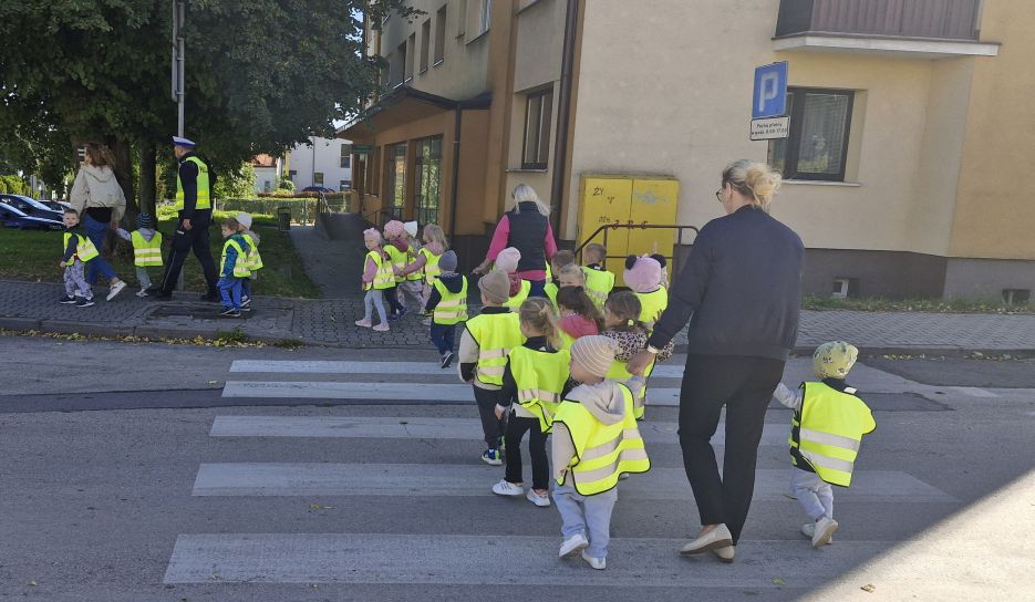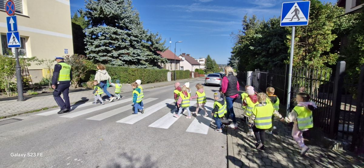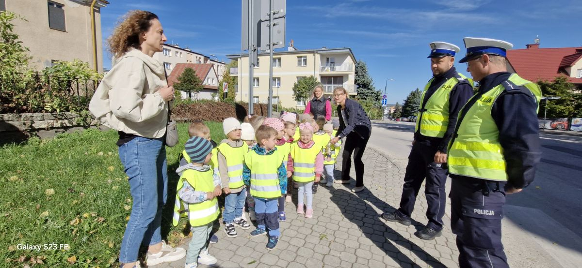 25 września dzieci z grupy Cytrynki uczestniczyły w wyjątkowym spotkaniu z Policjantami. Na pobliskim skrzyżowaniu przedszkolaki uczyły się, jak bezpiecznie przechodzić przez ulicę. Poznały zasady poruszania się po chodniku.