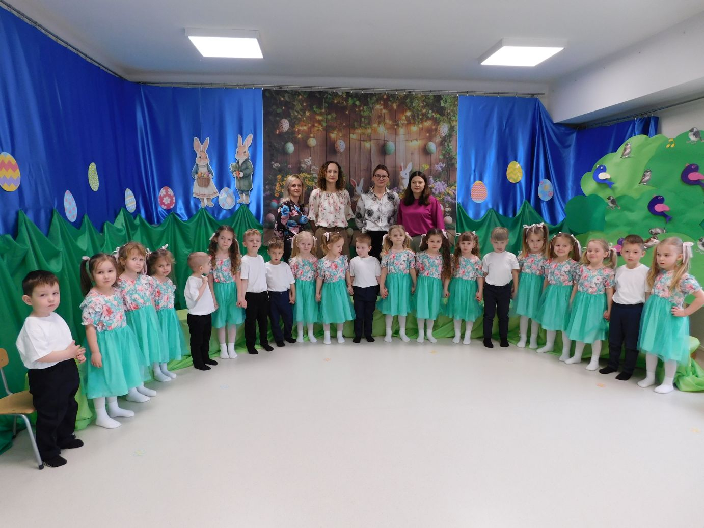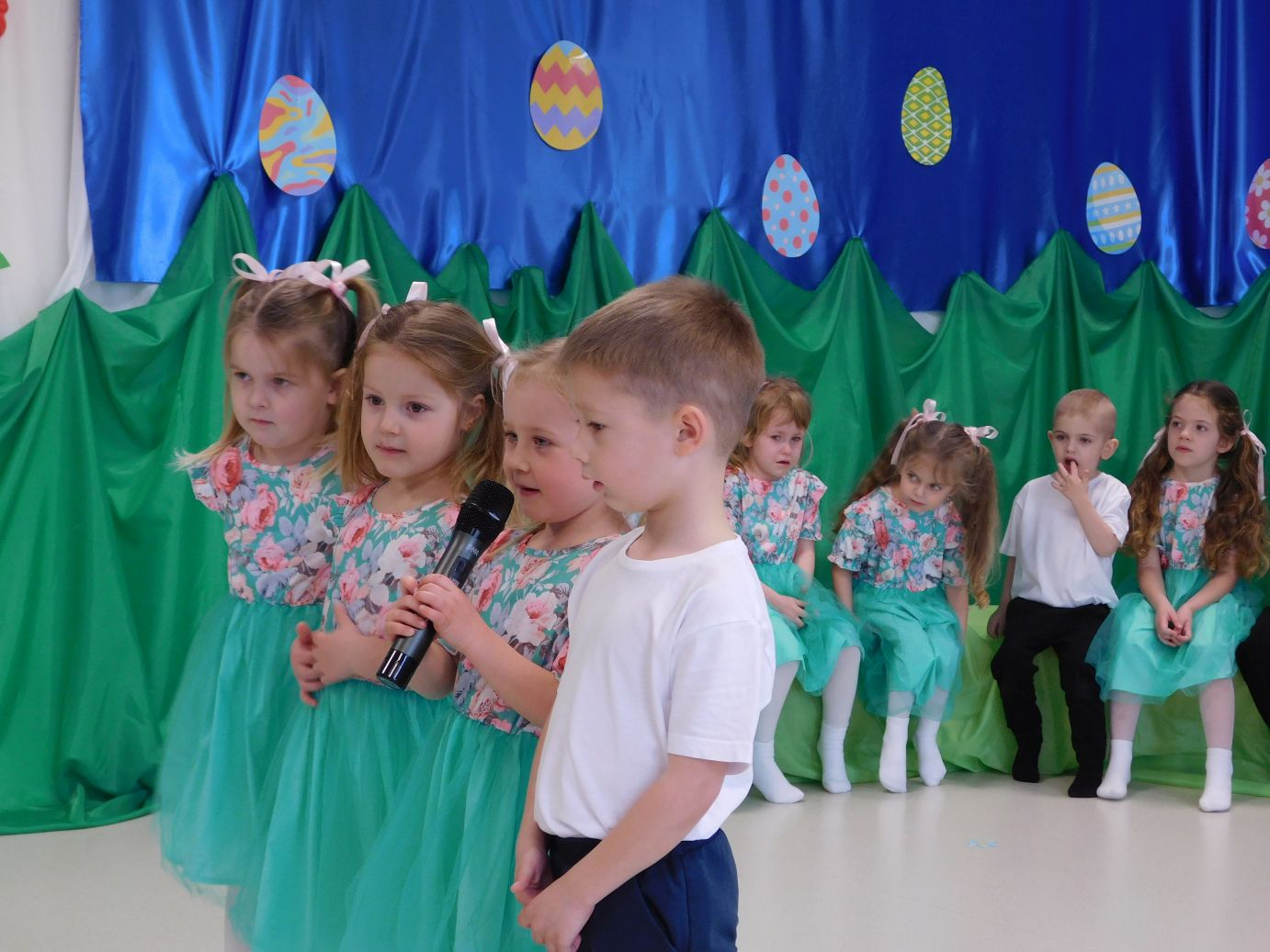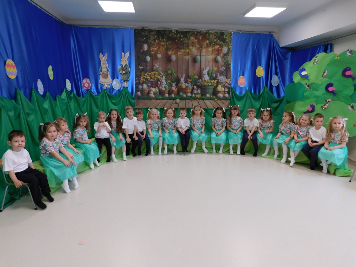 Wielkanocny-wystep-Cytrynek-4W piątek 27 marca w grupie „Cytrynki” odbył się uroczysty występ wielkanocny dla rodziców. Dzieci zaprezentowały wiosenny program artystyczny, pełen piosenek, wierszyków i radosnych inscenizacji nawiązujących do zbliżających się Świąt Wielkanocnych.