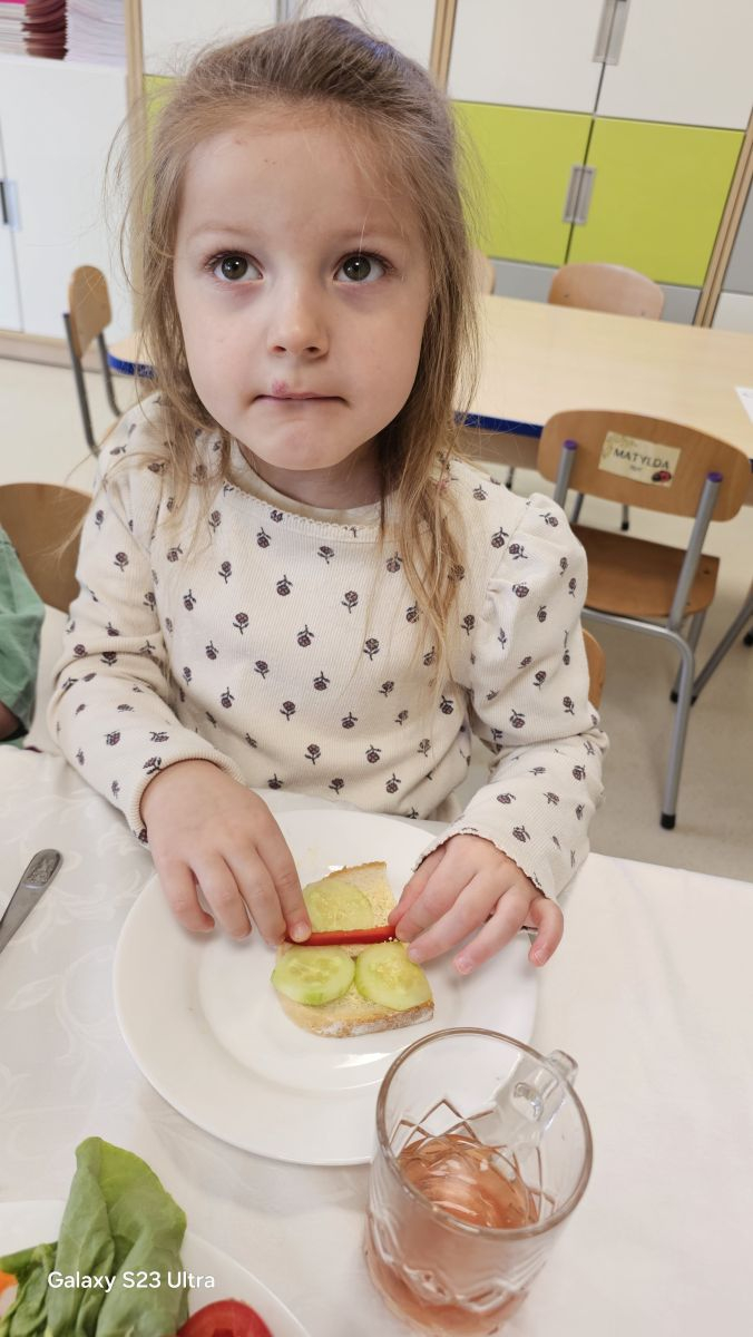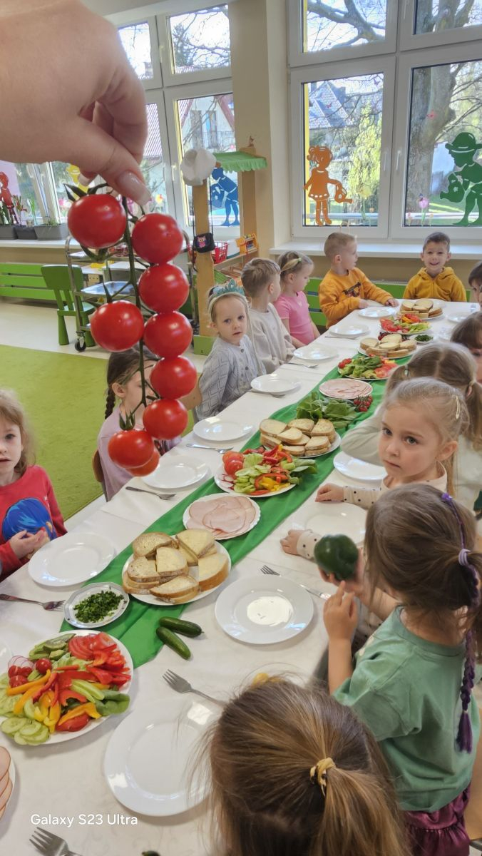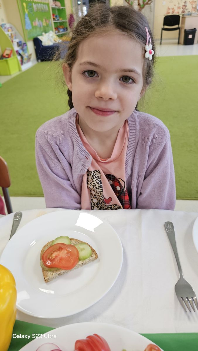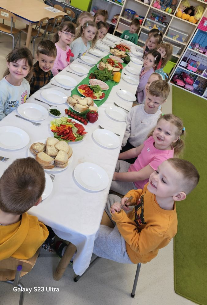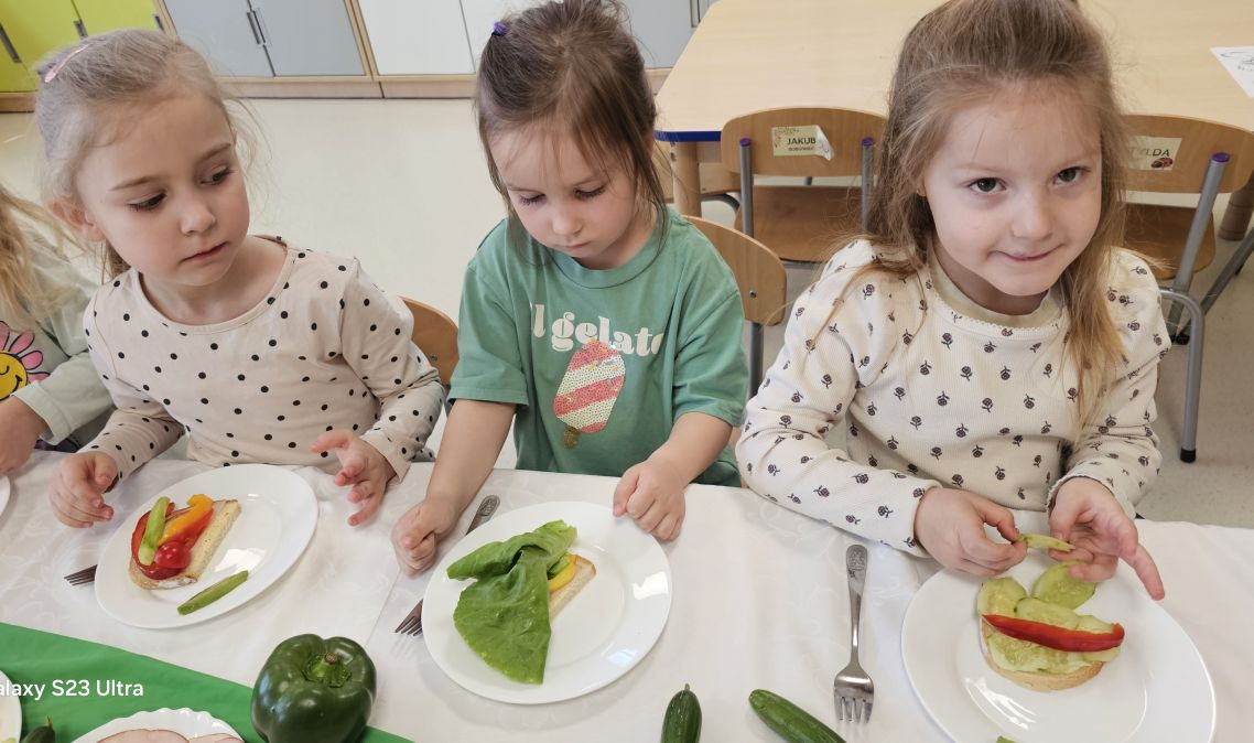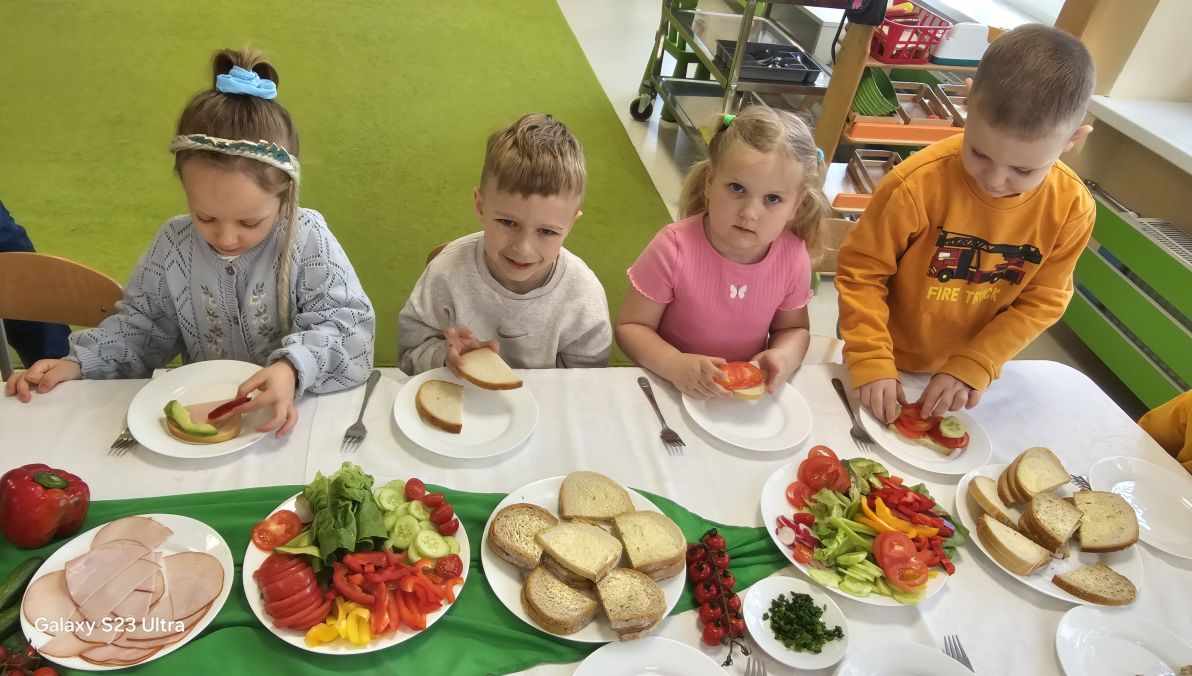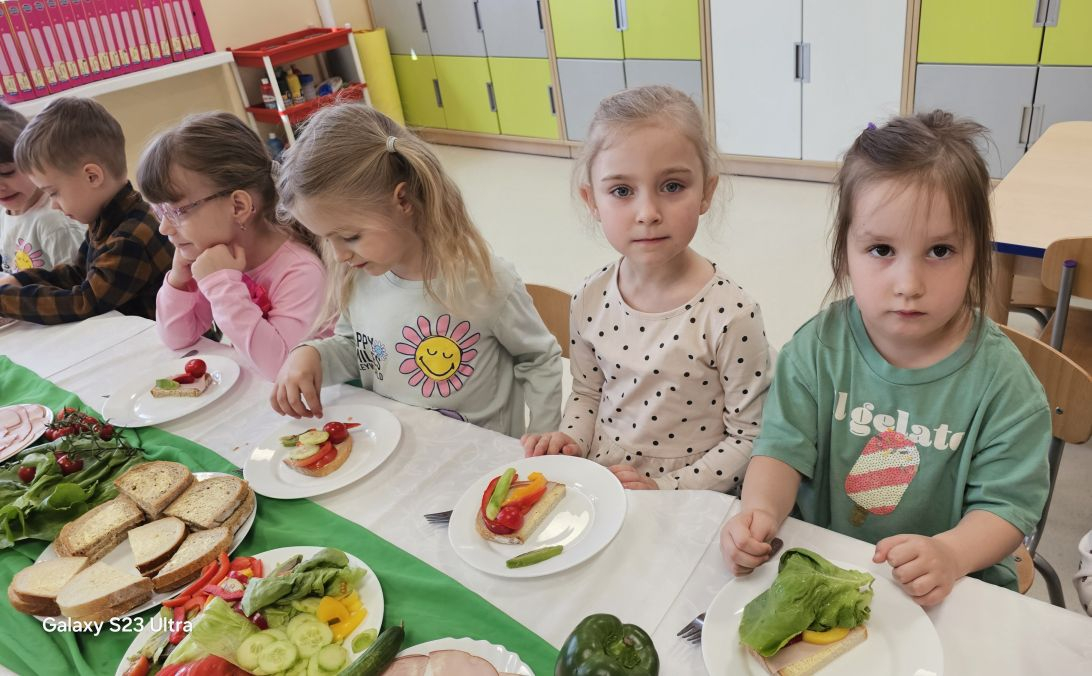 Dzieci chętnie uczestniczyły w przygotowywaniu posiłku, poznawały różne warzywa oraz utrwalały wiedzę zdobytą podczas zajęć. Wspólne śniadanie było nie tylko smaczne, ale również stanowiło świetną okazję do nauki i integracji grupy.