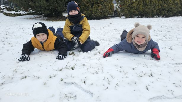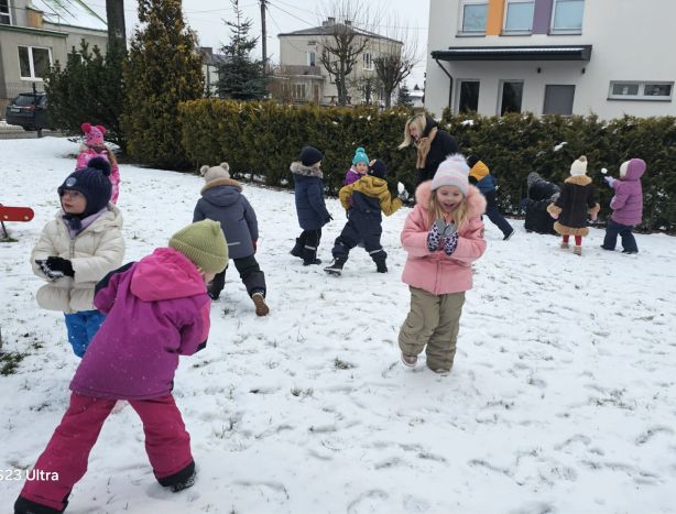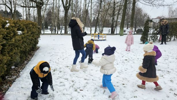 Grupa „Cytrynki” wyruszyła na przedszkolne podwórko, aby w pełni wykorzystać uroki zimowej aury. Choć kalendarzowa wiosna tuż-tuż, śnieżny puch pozwolił nam na zorganizowanie fantastycznych zabaw na świeżym powietrzu.