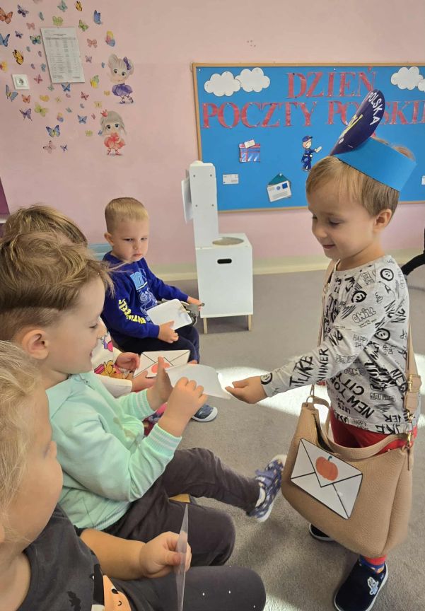20 października Malinki świętowały Dzień Poczty Polskiej. Dzieci poznały drogę listu, wysłuchały opowiadania o listonoszu i same bawiły się w pocztę – segregowały listy, przybijały pieczątki, obsługiwały okienko i roznosiły listy w torbie listonosza. To była świetna, pełna zabawy lekcja o pracy na poczcie! 💌📮
