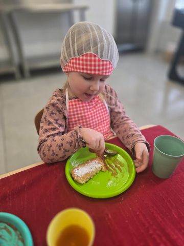 Z okazji Tłustego Czwartku dzieci z gr. Malinki przygotowały pyszne racuchy z jabłkami. Podczas wspólnego gotowania maluchy z radością mieszały składniki i uczyły się, jak powstaje tradycyjny przysmak. Była to nie tylko świetna zabawa, ale także okazja do poznania polskich zwyczajów związanych z tym wyjątkowym dniem. Gotowe racuchy wszystkim bardzo smakowały.