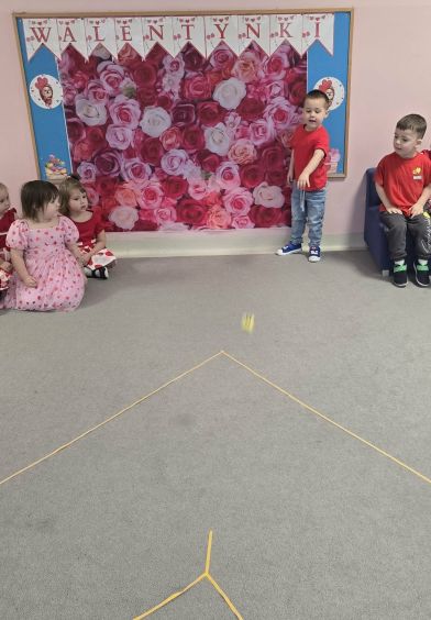 Walentynki w grupie Malinki upłynęły w bardzo radosnej i serdecznej atmosferze. Dzieci poprzez wspólne zabawy utrwalały kolory, ćwiczyły spostrzegawczość, celność oraz współpracę z rówieśnikami.