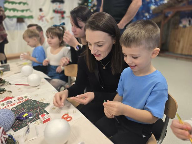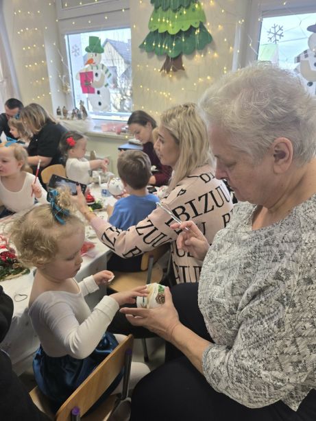 17 grudnia w grupie Malinki zapanowała prawdziwie świąteczna atmosfera. Podczas wyjątkowych warsztatów, na które z radością zaproszono rodziców, dzieci powitały gości pięknym występem – wyśpiewały świąteczną piosenkę oraz zaprezentowały wierszyk. Następnie mali artyści wraz z rodzicami oddali się twórczej pracy, wspólnie ozdabiając świąteczne bombki. Chwile spędzone razem wypełniły salę blaskiem, uśmiechem i ciepłem rodzinnych spotkań, wprowadzając wszystkich w magiczny klimat nadchodzących świąt. 🎄✨