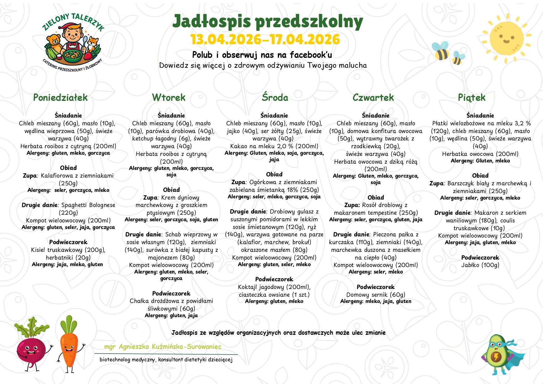 Jadłospis 13.04-17.04