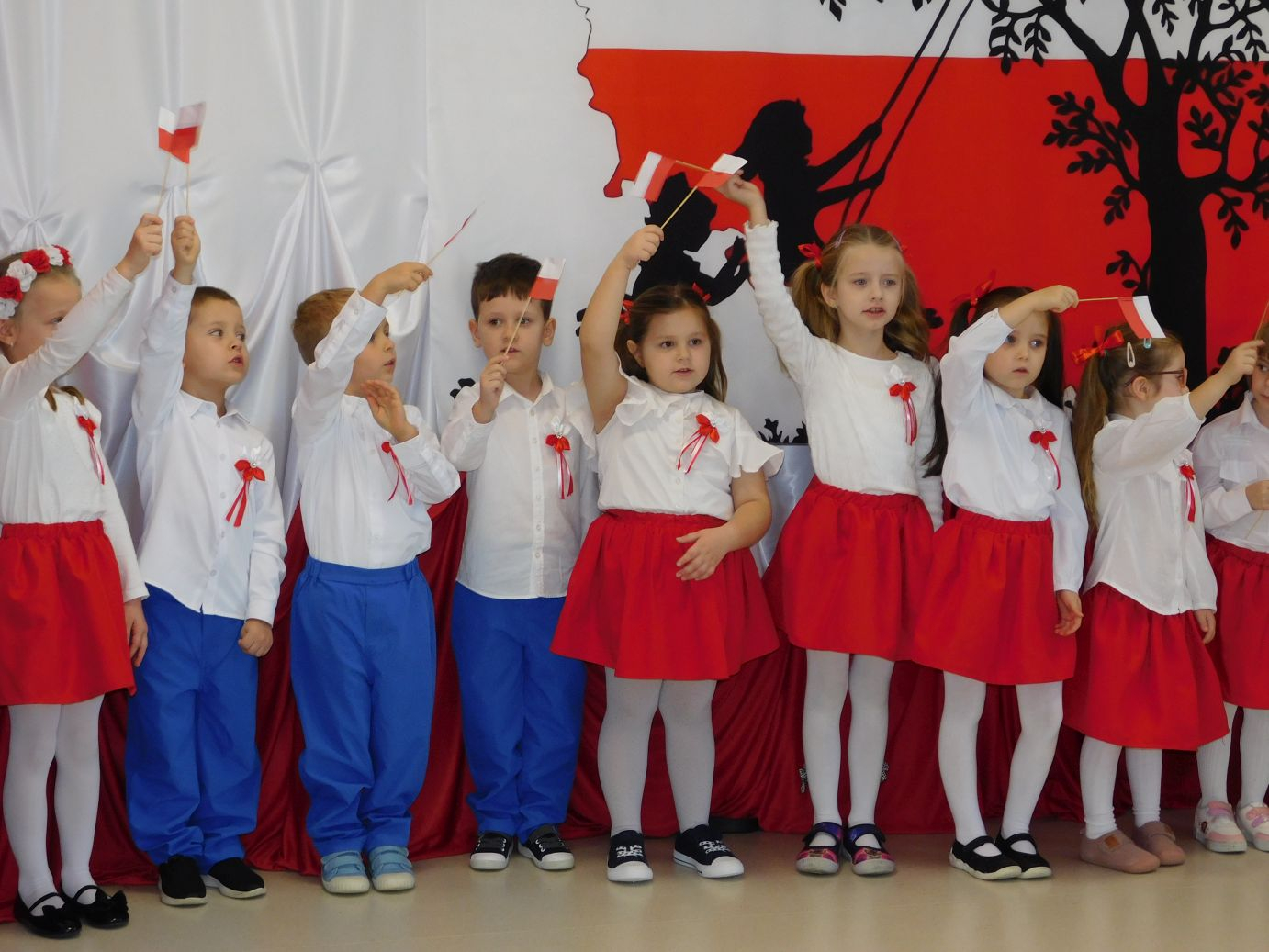 W naszym przedszkolu w czwartek 06 listopada odbyła się wyjątkowa uroczystość z okazji Narodowego Święta Niepodległości. Odwiedzili nas uczniowie klasy VIII A ze Szkoły Podstawowej Nr 1 w Busku Zdroju wraz z wychowawczynią Panią Beatą Lewandowską, którzy przygotowali piękny i wzruszający występ patriotyczny dla grup Jagódek i Jabłuszek. Ósmoklasiści zaprezentowali wiersze i piosenki patriotyczne, przypominając dzieciom o ważnych wydarzeniach z historii naszego kraju oraz o wartości wolności i niepodległości. Po występie uczniów przyszła kolej na naszych przedszkolaków. Grupa Jagódek z dumą wystąpiła przed szkolnymi gośćmi, prezentując patriotyczne piosenki związane z 11 listopada. Miłym akcentem spotkania było to, że wśród odwiedzających nas uczniów znalazły się osoby, które kiedyś były naszymi wychowankami, z uśmiechem wszyscy wspominaliśmy przedszkolne lata. Całą uroczystość zwieńczyło wspólne odśpiewanie Hymnu Polski. Był to podniosły moment jedności i pamięci o historii naszej Ojczyzny. Tego dnia wszyscy — zarówno mali, jak i duzi — pokazaliśmy, że nosimy Polskę w sercach. Dziękujemy klasie 8A oraz pani Beacie Lewandowskiej za pamięć i piękną lekcję patriotyzmu. To wydarzenie było dla dzieci niezwykle wartościowym przeżyciem, które na długo pozostanie w naszej pamięci.