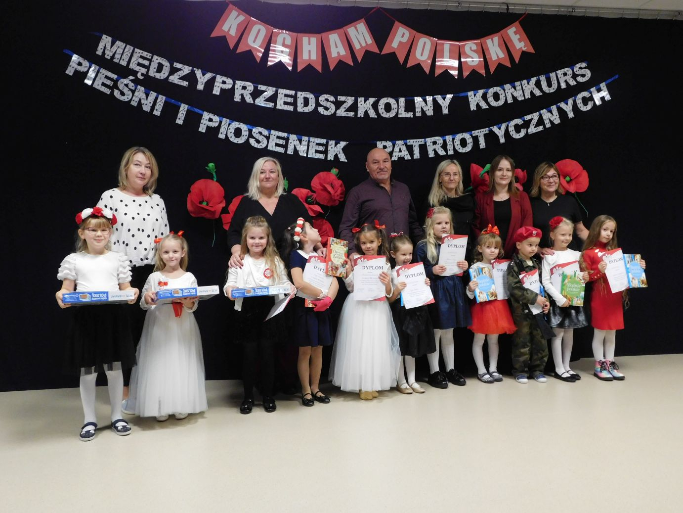 4 listopada w Publicznym Przedszkolu nr 3 w Busku- Zdroju odbył się Międzyprzedszkolny Konkurs Pieśni i Piosenek Patriotycznych „Kocham Polskę”, którego celem było kształtowanie wśród najmłodszych postaw patriotycznych, rozwijanie zainteresowań muzycznych oraz uczczenie zbliżającego się Narodowego Święta Niepodległości. Do konkursu przystąpiło 11 utalentowanych przedszkolaków z różnych placówek, prezentując z ogromnym zaangażowaniem wybrane pieśni i piosenki o tematyce patriotycznej. Mali artyści z wielką odwagą występowali przed publicznością, zachwycając pięknym śpiewem i wyjątkową interpretacją utworów. Jury miało niezwykle trudne zadanie, ponieważ wszystkie występy były na bardzo wysokim poziomie. Ostatecznie jedno z trzech pierwszych miejsc zdobyła Aleksandra Bulka, a trzecie miejsce wywalczyła Michalina Łukasik. Obie laureatki reprezentowały grupę „Jagódek”, z czego jesteśmy niezwykle dumni! Wszyscy uczestnicy otrzymali pamiątkowe dyplomy oraz drobne upominki, a gorący aplauz publiczności był najlepszym wyrazem uznania dla ich talentu i odwagi.