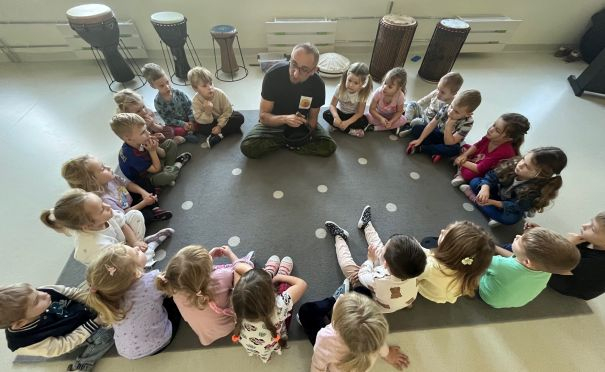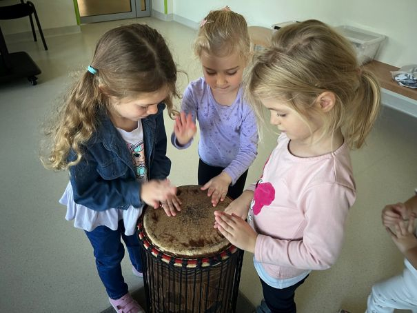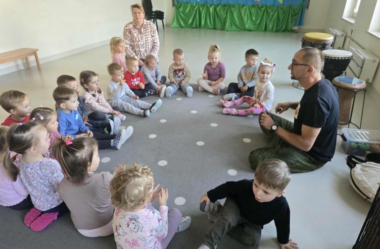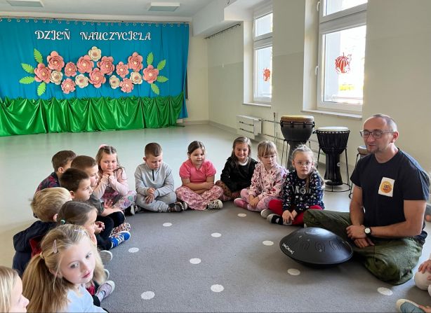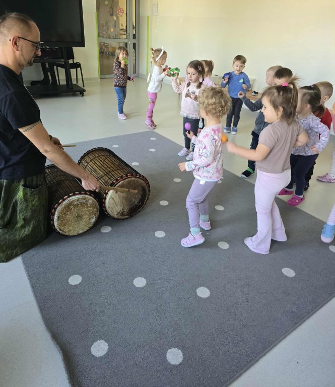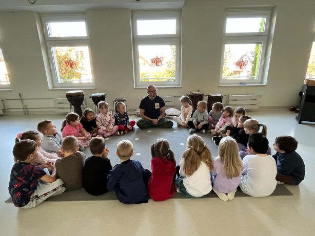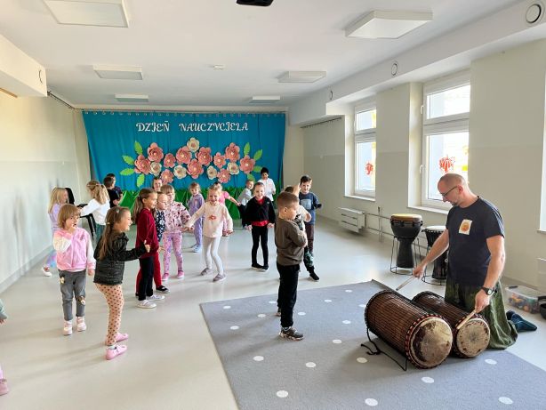Warsztaty bębniarskie prowadzone przez Pana Bębenka były niezwykłym muzycznym doświadczeniem. Dzieci uczyły się rytmu, poznawały różne rodzaje bębnów i wspólnie muzykowały. Zajęcia sprawiły wszystkim dużo radości i dobrej zabawy.